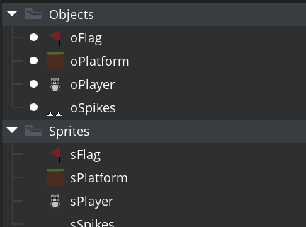 finally, go back and do it all again for the platform, spikes, and flag, creating sprites and objects for each one. make sure to import the sprites and attach them to objects!