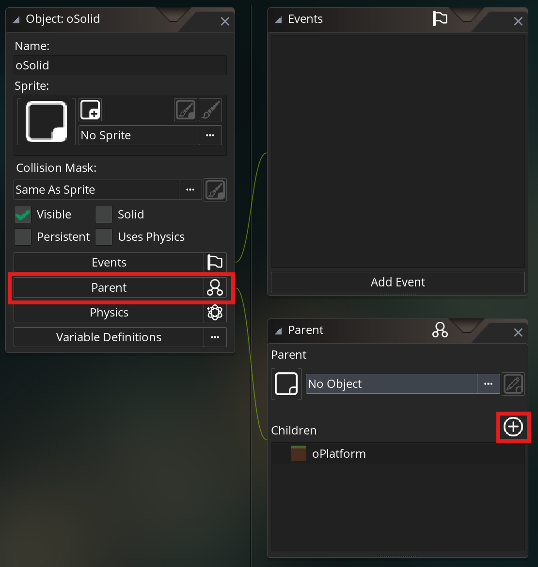 first create a new object called oSolid, this will function as a parent object for all of our solid objects that heidi can collide with