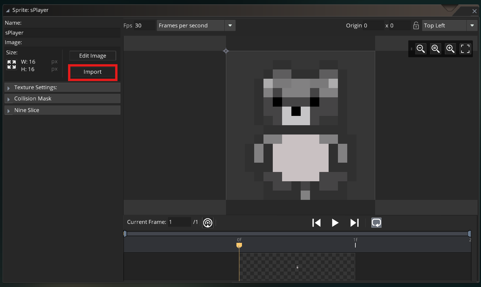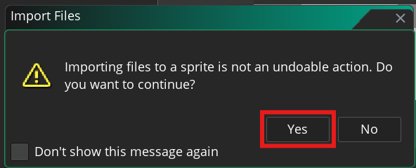 now, you can import your sprite! normally you should make your own sprite but i made one for you this time. you can just hit Import and select the player sprite from my asset pack from the last slide. make sure to click yes in the popup!