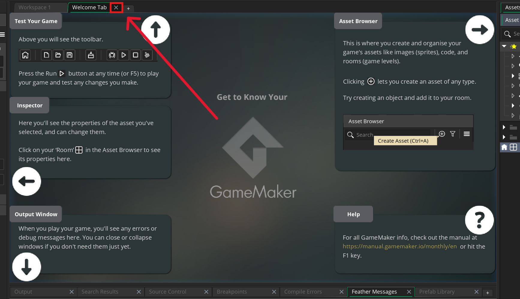 then it should open up your game editor! its a lot to take in, but i'll walk you through it. first close out of the welcome tab and lets get started!